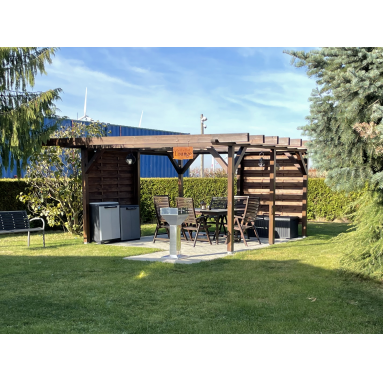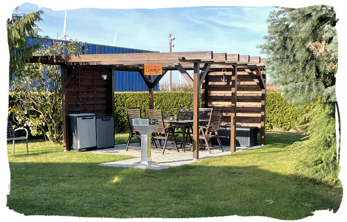 In unserem abgeschlossenem Gelände finden Sie überdachte Stellplätze für PKW, Transporter oder LKW und zur Entspannung nach Ihrem Urlaubs- oder Arbeistag steht Ihnen unser Grillplatz mit überdachter Terasse gern zur Verfügung.