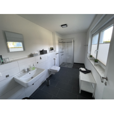 Fürs Spa-Feeling nutzen Sie unsere großzügigen Einzelbäder oder für Monteurunterkünfte unser Gemeinschaftswaschraum mit viel Bewegungsradius.